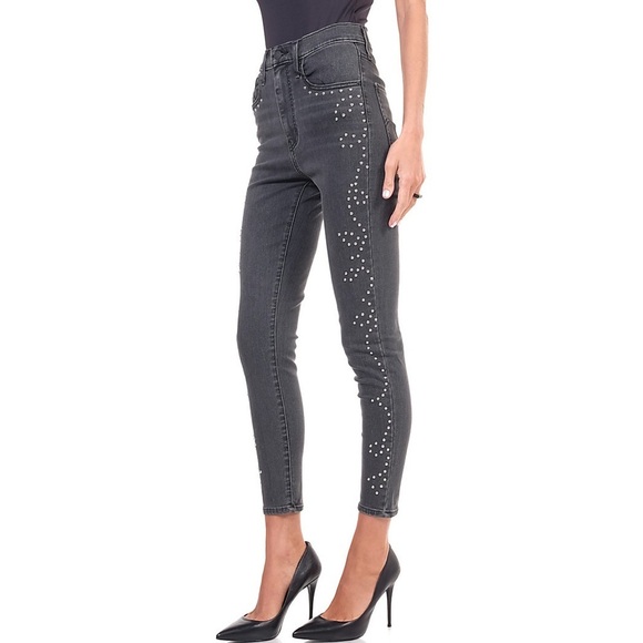 Levi’s Mile High Super Skinny Grey Embellished Ankle Black Studded Rise Premium