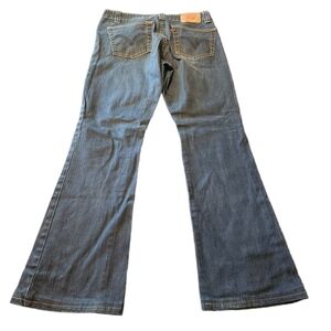 Levi's Nouveau DownTowner, blue, boot cut, stretch, denim jean pants. Mid-rise, Zip-up fly with one button closure, two front pockets,two back pockets and belt loops. Super comfortable, stretchy, lightweight jeans and in very good condition size 8 MIS L=M