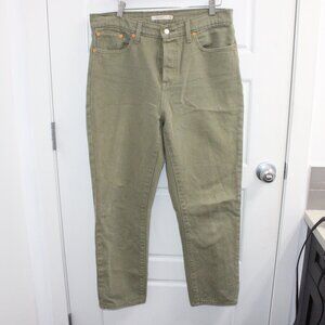 Stylish Levi's straight leg jeans. Olive green color. Classic design with button closure.