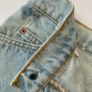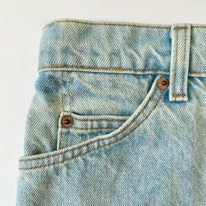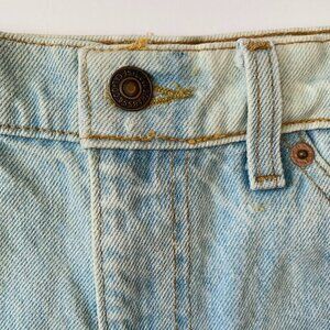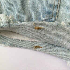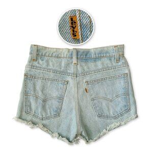 Levis Orange Tab Light Blue High Waisted Jean Shorts Fringe Distressed Boho