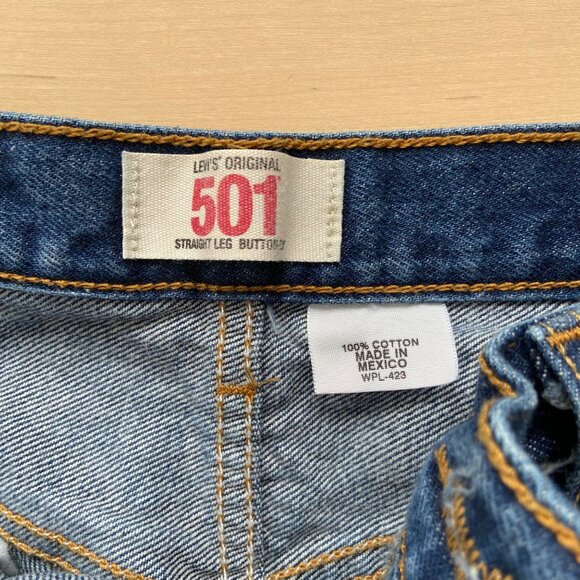 These Levi's 501 jeans feature a classic straight-leg design with a button fly. Made from durable cotton denim, they offer both style and longevity for casual wear.