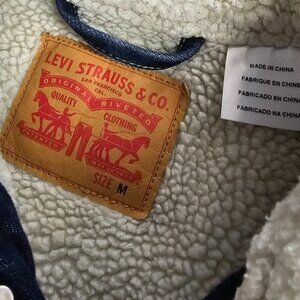 Levi's Original Sherpa Denim Trucker Jacket, Blue, Jean, Button Up, Size Medium
