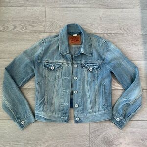 First pic is to show a similar style. The jacket for sale is a slightly different wash