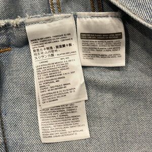 Levi’s Original Trucker jean jacket in light wash with Levi’s branded button front, two front chest pocket with button closure, iconic “V” stitch, two front slant pockets, button sleeve cuff. Size Medium. Excellent used condition. Please see photos, measurements are for reference only. Reasonable offers welcome!