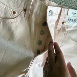 Levi's Pink Jean Shorts High-Waisted Cuffed Hem in Peach