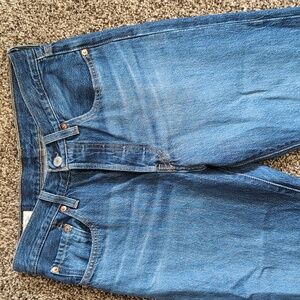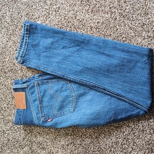 Good used condition. The tag is marked as size 26 x 32 but the waist is measuring 28" which is why I have listed it at size 28 instead of size 26, and the length is more like 31. Please see photos. High rise, straight leg, button fly. Modern big "E" red tab women's Levi's. Questions are always welcome. If you need more measurements to verify fit please ask.