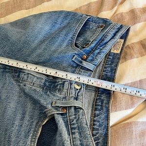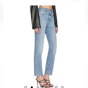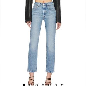 PRODUCT DETAILS • 99% cotton, 1% elastane • Made in Cambodia • Machine wash • Button fly • Structured denim fabric • 14" / 36 cm at the knee narrows to 12" / 30 cm at the leg opening • Revolve Style No. LEIV-WJ305 • Manufacturer Style No. 12501-0415 EUC Like New Measurements are approximate Material tag removed B4