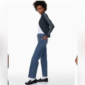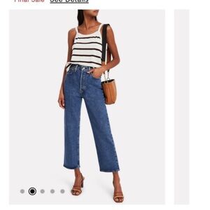These are Levi's® Premium jeans with a super high rise and a straight leg cut to the ankle. They're slim-fit through the hip and are cut from comfort-stretch denim made with organic cotton. This version comes in a medium wash with a clean hem. EUC Like new.