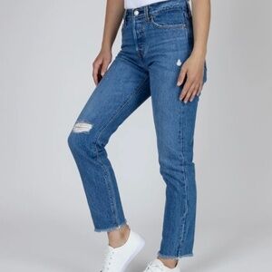 Levi’s Premium Wedgie Iconic Fit Raw Hem Ankle Jeans Womens 25