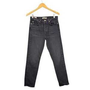 levis wedgie jeans, levis size 28, black wedgie fit, vintage style denim, button fly jeans, levis 501 inspired, high rise levis, straight leg levis, 90s levis jeans, wedgie straight jeans, sustainable levis jeans, waterless levis denim, premium levis jeans