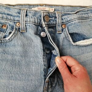 Levi's Premium Wedgie Straight Jeans in Tango Hustle Medium Wash Raw Hem 30 (10)