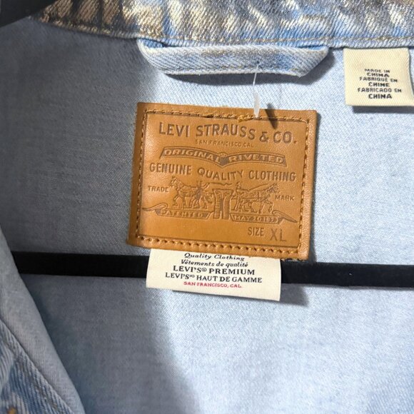 Step into ’90s vintage-inspired style with this Levi’s Premium Women’s Shrunken Trucker Jean Jacket in Silver Gold Finish - Denim, size XL. Designed with a relaxed fit and cropped silhouette, this jacket is perfect for layering over tees, sweaters, or dresses, offering effortless streetwear vibes with premium Levi’s quality.
