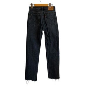 Levi's Premiums Washed Black Denim Wedgie Straight Jeans size 26 Distressed Hole