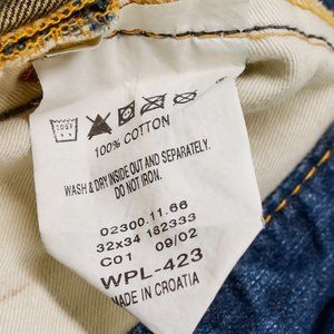 These vintage mid-rise jeans from Levi’s Red Collection are cut from raw denim and come in the classic 5-pocket style with a straight leg. Featuring a 3-button fly, decorative topstitching, wide belt loops, cuffed hems, and the signature red label at the back right pocket, these jeans are the epitome of quality that never goes out of style.