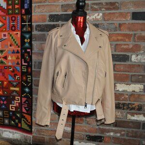 Levi's Red Tab Faux Leather Belted Motorcycle Moto Jacket Biscotti L
