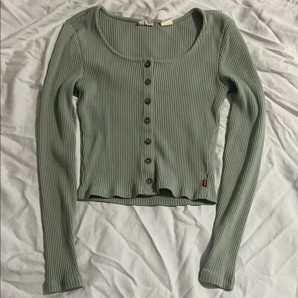 Levi’s Ribbed Sage Green Button-Up Crop Top