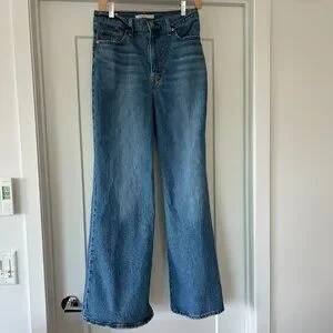 Stylish wide leg jeans by Levi's. Vibrant blue denim. Ideal for everyday wear.