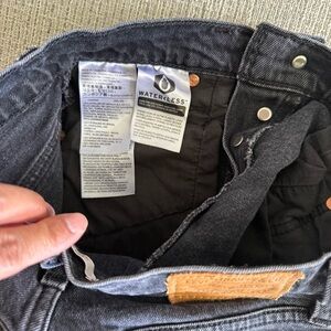These Levi's jean shorts are crafted from solid black denim, featuring a high-waisted design and a stylish rolled hem for a relaxed, casual look. Ideal for everyday wear, they offer a comfortable fit and timeless appeal.