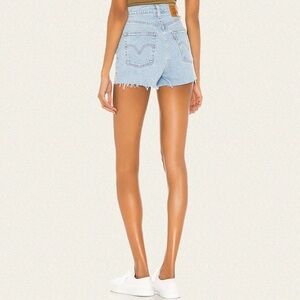 These are Levi's® Premium denim shorts with a super high rise and a raw edge that can either be cuffed or left unrolled. They