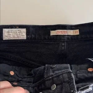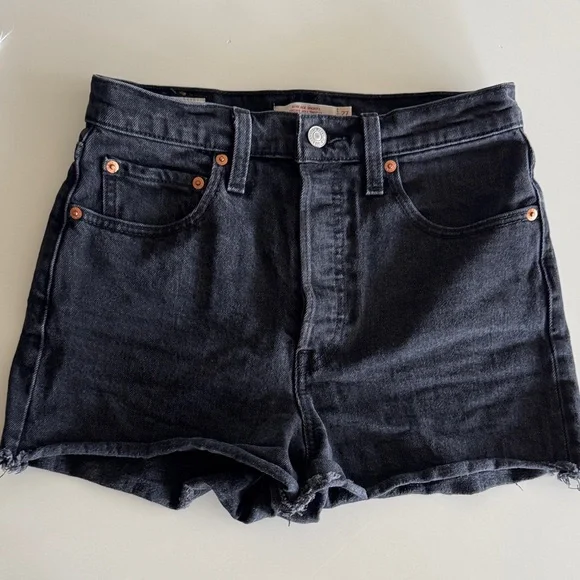 Stylish black jean shorts by Levi's. Comfortable and versatile for everyday wear.