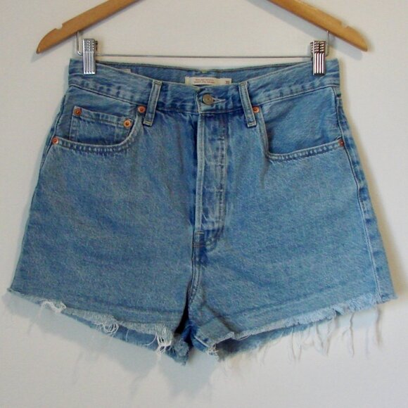 Levi's Ribcage Shorts Authentic Denim Jean Frayed Raw Hem Button Front ~ Size 30 ~ no fabric tag but probably 100% Cotton