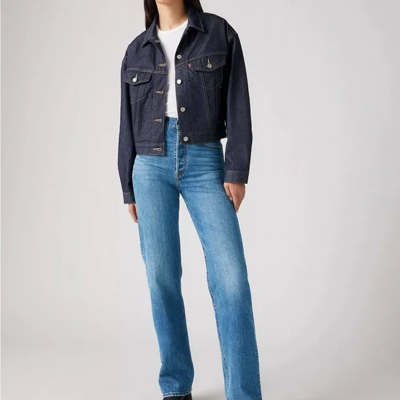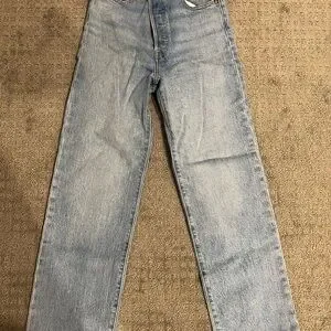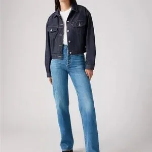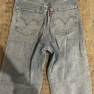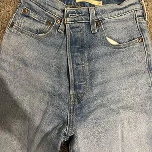 Experience the timeless appeal of Levi's Ribcage Straight blue jeans, crafted from premium denim for a classic look. These jeans feature a flattering high rise fit that complements any wardrobe. With their iconic blue hue, they are perfect for both casual and dressier occasions. *Never Worn, practically brand new*