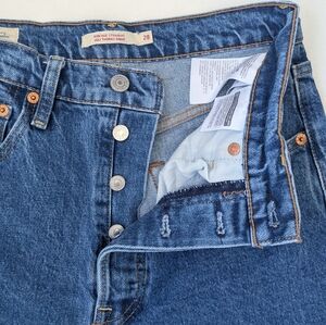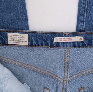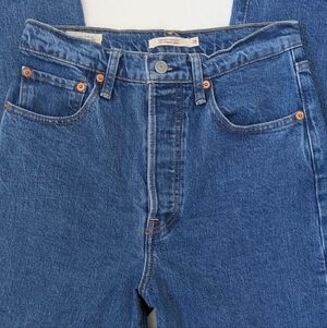 These are Levi’s® Premium jeans with a super high rise and a straight leg cut to the ankle. They're slim-fit through the hip and are cut from comfort-stretch denim. Button fly with 5 pocket styling.
