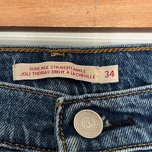 Levi's Ribcage Straight Cropped Frayed Hem Jeans