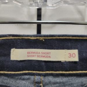 Levi’s Sculpt Women's Bermuda Shorts Denim Blue Dark Wash Rolled Hem Casual W30