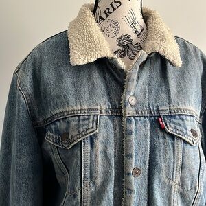 Classic Levi’s Type III sherpa trucker with authentic wear and faded soul.