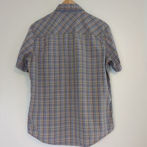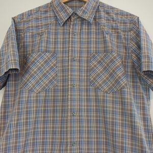 Levi's Shirt Mens Medium Pearl Snap Blue Plaid Short Sleeve Western Cowboy