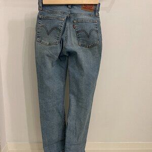 High Rise; Snug through hip and thigh; Button fly; Straight leg