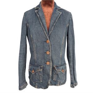 Levi's Strauss signature medium wash denim jean blazer jacket sz s 4/6 authentic