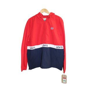 Levi's, Red, White, blue, Hooded, 1/2 Zip, Pullover, Windbreaker, Light Jacket, Fall Jacket