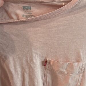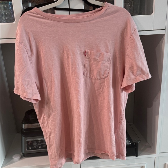Soft light pink tee featuring a front pocket. Ideal for casual outings.