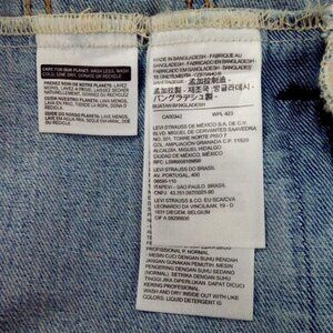 This regular fit 100% cotton non-stretch Levis denim jacket has a pointed collar, front button placket and hits at the waist. It has long sleeves with button closures at cuffs, button-flap patch pockets at chest; welt side pockets and side hem adjusters. There is a classic red tab styling. LEVIS The original jean jacket since 1967. Levi's® iconic Trucker Jackets are fit for anything and made to go the distance. This item is authentic.