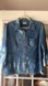 Classic Levi's button down denim shirt. Distressed with tie dye faded blue wash. 3/4 sleeve with buttoned cuff. Pockets. Red label. 100% cotton.