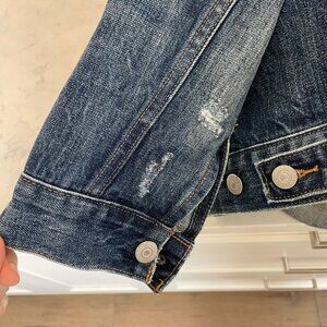 Levi Strauss & Co. Ex-Boyfriend Trucker Distressed Casual Med Wash Denim100% Cotton Blue Jean Jacket