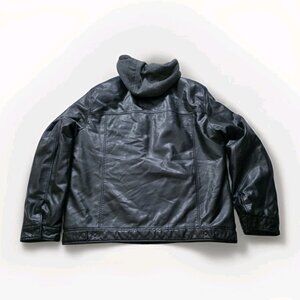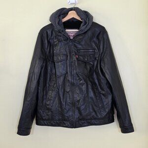Levi's Trucker Jacket Men XL Black Faux Leather LS Hooded Pockets Western Grunge