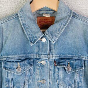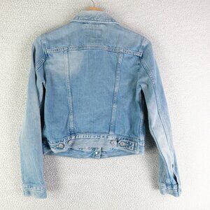 Levi’s Trucker Jacket Womens Small Light Blue Denim Classic Button Up Distressed