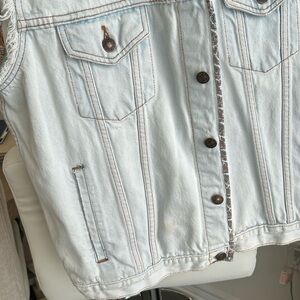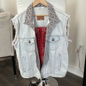 Levi’s Trucker Upcycled Lightwash Denim Vest Red Paisley Bandana Print Unisex