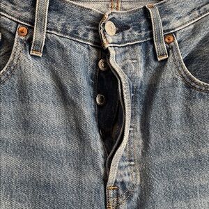 Stylish boot cut jeans by Levi's. Classic blue color with small distressed knees. Perfectly worn in with that faded look in all the right places. Tailored to ankle. Perfect for everyday wear.