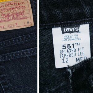 Vintage Levi's 551 Women's M 30" Waist US Size 6 to 8 Black Dark Denim Wash High Waisted Rise Relaxed Tapered Leg Made in USA 1990s