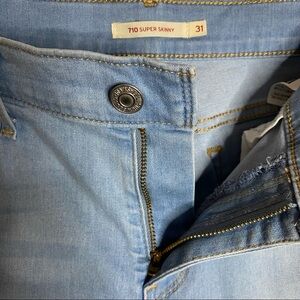 Features: Women's Levi's 710 Super Skinny Jeans, advanced stretch denim for maximum comfort, soft, zip fly with button closure, belt loops, 5 pockets, 2 front, 2 back, 1 coin, red tag small e, vintage, casual, western, work, school, business casual