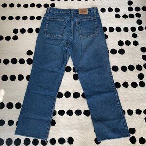 Step into classic style with these Vintage Levi's Orange Tab Jeans, a timeless addition to any wardrobe. Crafted in the 90s, these straight-leg denim jeans offer a comfortable mid-rise fit, size 32, with a raw hem inseam of 27 inches, ensuring a perfect blend of style and functionality for everyday wear. Featuring the iconic Levi's branding, the jeans come in a versatile blue hue with a medium fabric wash, suitable for a variety of occasions. The durable cotton material provides easy care and comfort, while the traditional 5-pocket design adds practicality. Whether you're out on the town or enjoying a casual day, these jeans are a dependable choice for any season.