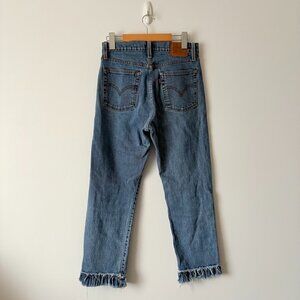 Levi's Wedge Straight Raw Ruffle Hem Denim Jeans Blue Wash Size 27