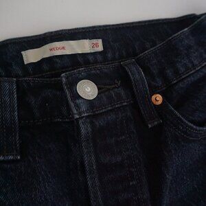 Levi's Wedgie Black Stone Wash Straight Tapered High Waisted Denim Jeans 26