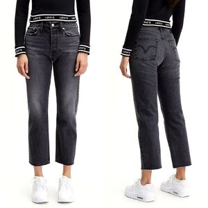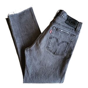 Levi's Wedgie Straight Black Embers faded black cropped raw hem jeans size 26