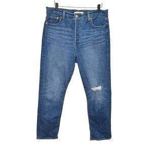 Levi's Wedgie Straight Jeans Button Fly Size 32 High Rise Distressed Denim