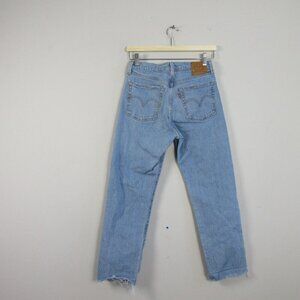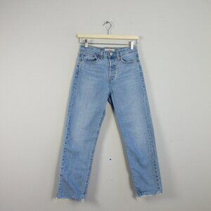 Levi's Wedgie Straight Jeans Women 26 Blue Crop Cotton Button Fly Distressed 570